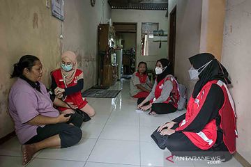 Dokter muda Fakultas Kedokteran UNS dan tim medis Palang Merah Indonesia (PMI) Solo memeriksa kesehatan warga saat kegiatan Susur Kampung PMI di Ngemplak Sutan, Mojosongo, Solo, Jawa Tengah, Jumat (17/12/2021). Kegiatan tersebut untuk memberikan pelayanan kesehatan gratis kepada warga serta memberi pengalaman bagi dokter muda untuk mengabdi kepada masyarakat. ANTARA FOTO/Mohammad Ayudha/rwa.