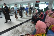 Sejumlah model memperagakan busana batik dalam Fashion Show Batik di Bandara Adi Soemarmo, Boyolali, Jawa Tengah, Minggu (2/10/2022). PT Angkasa Pura I Bandara Adi Soemarmo bekerja sama dengan perancang busana asal Solo Rory Wardana menggelar Fashion Show Batik untuk memeriahkan Hari Batik Nasional sekaligus mempernalkan berbagai jenis motif batik agar masyarakat lebih mencintai terhadap karya batik Indonesia. ANTARA FOTO/Aloysius Jarot Nugroho/foc.