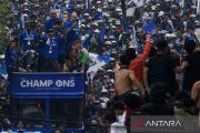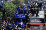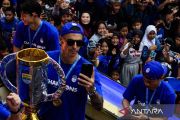 Sejumlah pesepak bola Persib Bandung menaiki Bandung Tour On The Bus (Bandros) saat pawai juara melintasi Jalan Pasteur, Bandung, Jawa Barat, Sabtu (1/6/2024). Pawai Tim Persib Bandung yang diikuti ribuan warga Kota Bandung tersebut untuk merayakan keberhasilan Persib Bandung menjuarai Liga 1 Indonesia musim 2023-2024. ANTARA FOTO/Novrian Arbi/Spt.