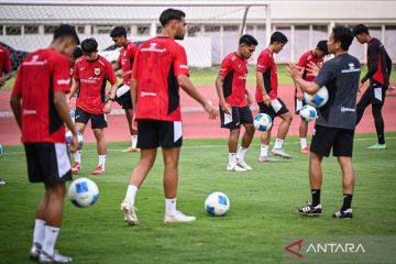 Sejumlah pesepak bola Timnas Indonesia U-23 mengikuti sesi latihan di Stadion Madya, Kompleks GBK, Senayan, Jakarta, Jumat (3/10/2025). Latihan tersebut sebagai persiapan untuk berlaga pada SEA Games 2025 yang berlangsung di Thailand pada 9-20 Desember 2025. ANTARA FOTO/Fauzan/nym.